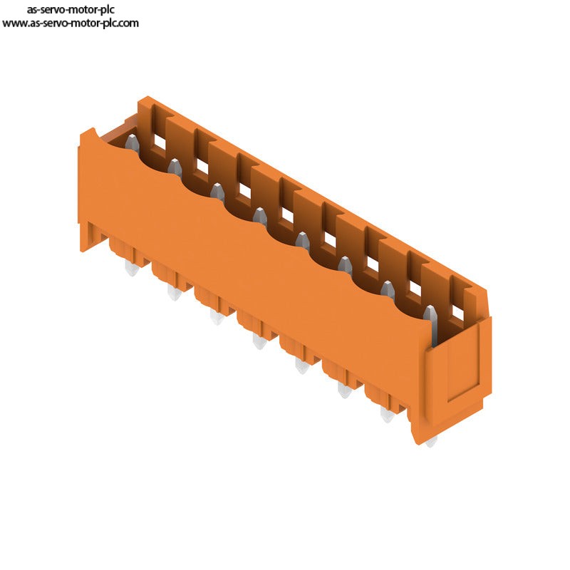 Description:PCB plug-in connector, male header, Dovetails for fixing blocks, THT solder connection, 5.08 mm, Number of poles: 8, 180°, Solder pin length (l): 3.2 mm, tinned, orange, Box