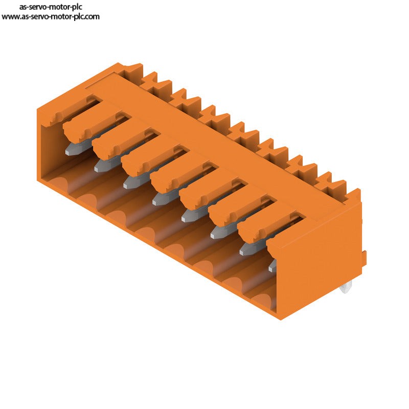 Description:PCB plug-in connector, male header, closed side, THT solder connection, 3.50 mm, Number of poles: 8, 90°, Solder pin length (l): 3.2 mm, tinned, orange, Box