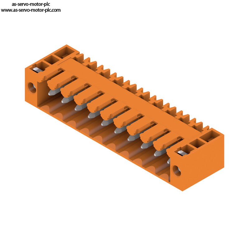 Description:PCB plug-in connector, male header, Flange, THT solder connection, 3.50 mm, Number of poles: 10, 90°, Solder pin length (l): 3.2 mm, tinned, orange, Box