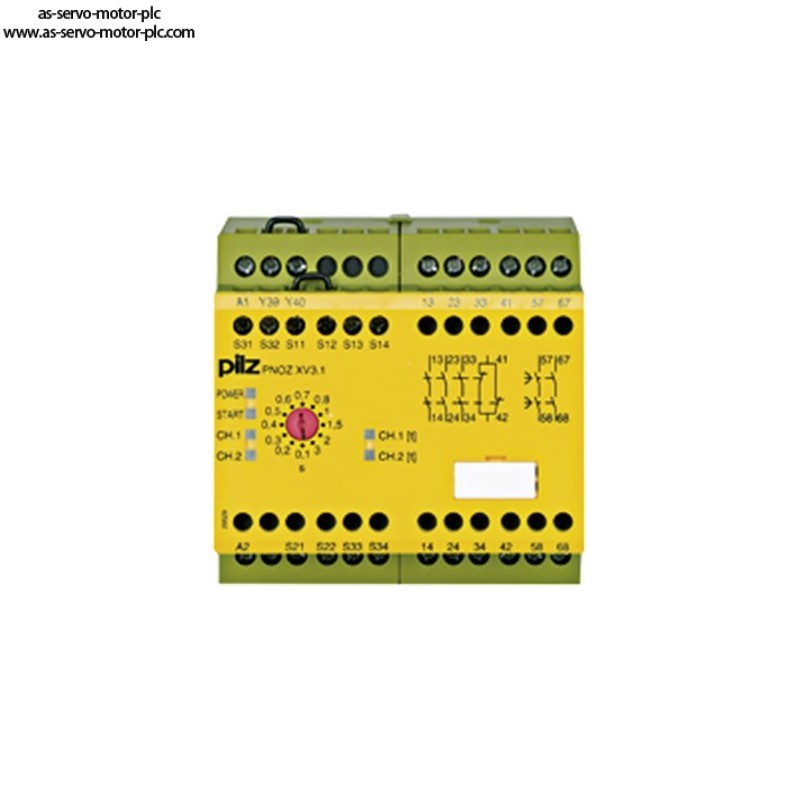 Description:Safety relay (standalone) Inputs: 1-/2-channel wiring with/without detection of shorts across contacts Outputs: 3 N/O, 1 N/C, 2 N/O delayed UB 24 V DC, width: 90 mm, integral screw terminals, Monitoring E-STOP, safety gates with 2 delay-on de-energisation contacts. Release time 12 stages from 0 - 3 s.