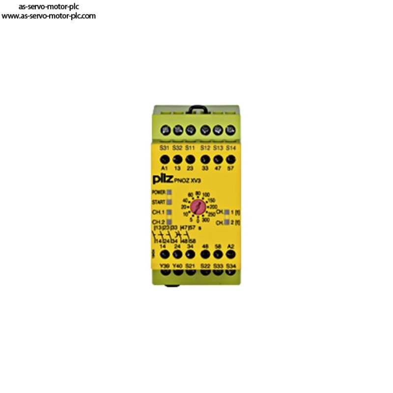 Description:Safety relay (standalone) Inputs: 1-/2-channel wiring with/without detection of shorts across contacts Outputs: 3 N/O, 2 N/O delayed UB 24 V DC, width: 45 mm, integral screw terminals, Monitoring E-STOP, safety gates with 2 delay-on de-energisation contacts. Release time 12 stages from 0 - 300 s.